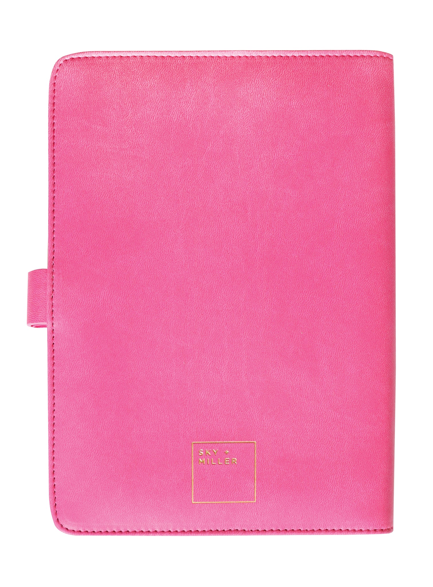 Fall in love with this pink faux leather folio, with gold stamped heart icon. Includes 6 credit card pockets, two large slip pockets and a 40-page notebook.